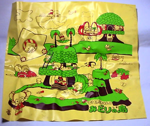 水遊びだけに畳が濡れたりしたら大変だ、付属のシートをしこう!でもこの頃はちゃんとプリントされたものだったのね。テーブルクロスにも使えそうだ。